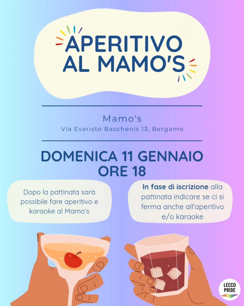 Dopo le 18 ci sposteremo al @mamos_queer_bergamo locale queer di Bergamo, per un aperitivo e a seguire, per chi vuole, karaoke.